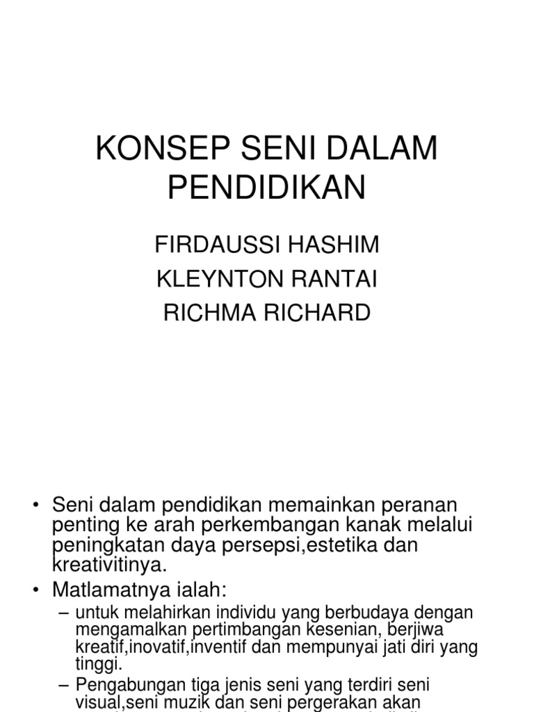 Konsep Dan Latar Belakang Seni Dalam Pendidikan 1 Pdf